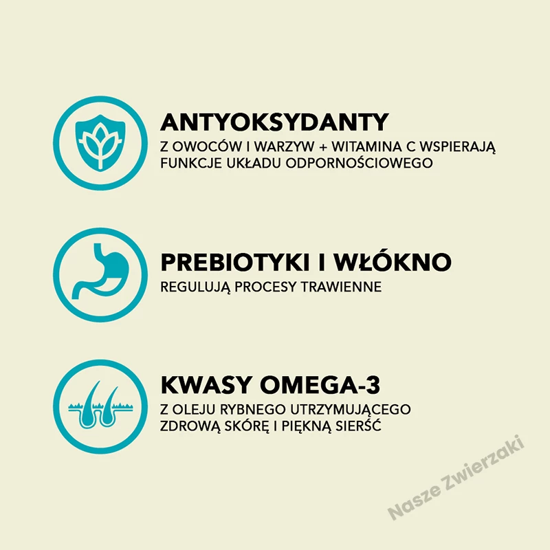 ? Odżywcze ryby – łosoś i śledź to nie tylko smakowite źródła białka, ale także bogactwo nienasyconych kwasów tłuszczowych Omega-3, DHA i EPA, które wspierają zdrową sierść i serce.