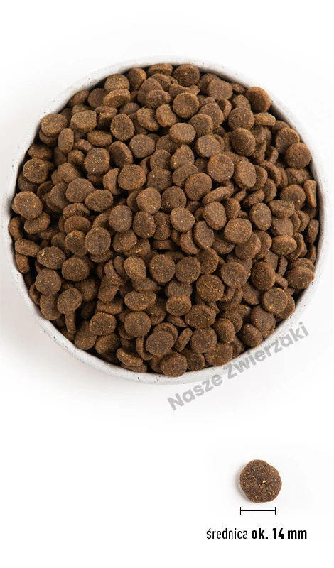 Karma jest w 100% wolna od glutenu, wypełniaczy, sztucznych dodatków i zbędnych składników – czyste i kompletne żywienie w zgodzie z naturą.