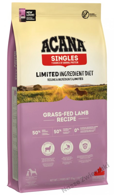 ACANA Singles Grass-Fed Lamb to receptura stworzona specjalnie z myślą o psach wymagających diety eliminacyjnej, z alergiami pokarmowymi lub wrażliwym układem trawiennym. Karma zawiera tylko jedno źródło białka zwierzęcego – jagnięcinę, co czyni ją wyjątkowo lekkostrawną i odpowiednią dla większości psów nietolerujących innych rodzajów mięsa.