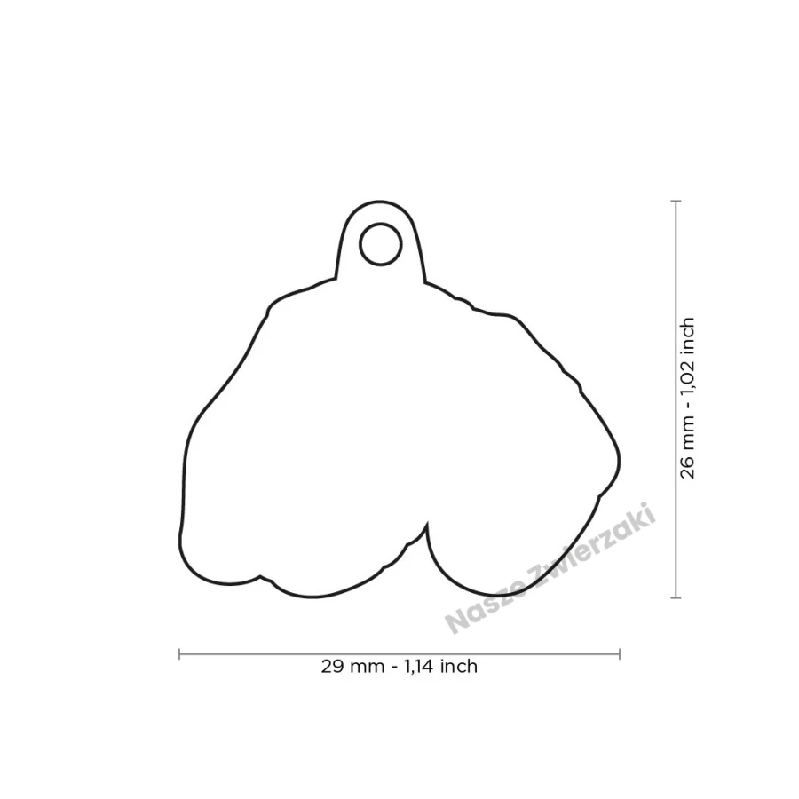 Wszystkie adresówki zostały zaprojektowane i wykonane we włoskiej fabryce biżuterii. Niepowtarzalne, trwałe kolory zapewniają odporne na ścieranie farby kauczukowe. Adresówki są wykonane z wysokiej jakości aluminium, a wszystkie krawędzie są bezpieczne dla zwierząt. Tekst jest grawerowany, a nie wypalany, co gwarantuje długą żywotność zawieszki. Na tej adresówce można wygrawerować do dwóch linijek tekstu.