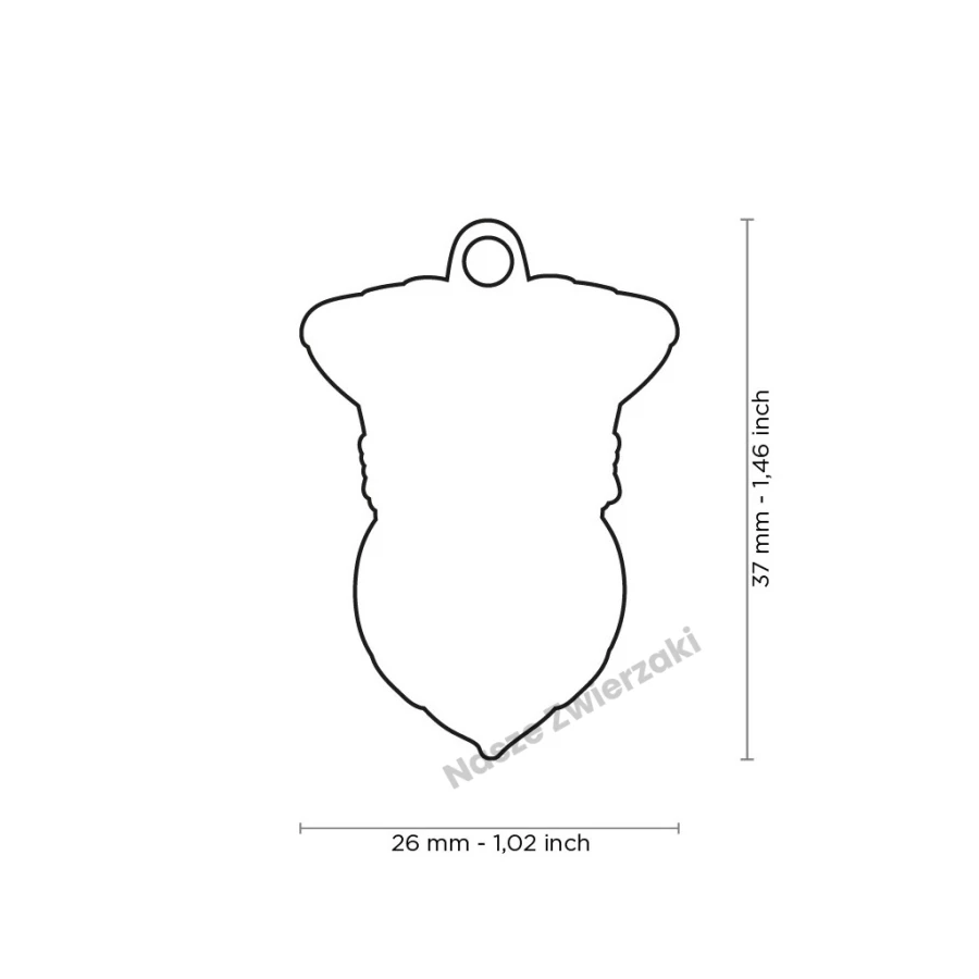 Wszystkie adresówki zostały zaprojektowane i wykonane we włoskiej fabryce biżuterii. Niepowtarzalne, trwałe kolory zapewniają odporne na ścieranie farby kauczukowe. Adresówki są wykonane z wysokiej jakości aluminium, a wszystkie krawędzie są bezpieczne dla zwierząt. Tekst jest grawerowany, a nie wypalany, co gwarantuje długą żywotność zawieszki. Na tej adresówce można wygrawerować do dwóch linijek tekstu.