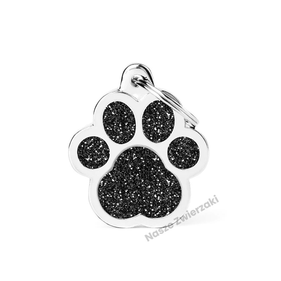 Adresówka SHINE duża łapka czarna błyszcząca - brokatowa adresówka dla psa