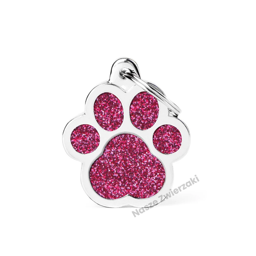 Adresówka Shine duża łapka różowa błyszcząca - brokatowa adresówka dla psa