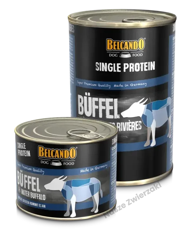 BELCANDO Single Protein Bawół Wodny to monobiałkowa karma mokra oparta wyłącznie na mięsie i podrobach z bawoła wodnego – idealna dla psów z alergiami lub nietolerancjami na powszechnie stosowane źródła białka, takie jak kurczak czy wołowina. Nie zawiera zbóż, soi, warzyw, owoców ani sztucznych dodatków – tylko czyste, wartościowe mięso o wysokiej przyswajalności. To doskonały wybór dla psów wymagających prostoty, ale mimo wszystko różnorodności w diecie.