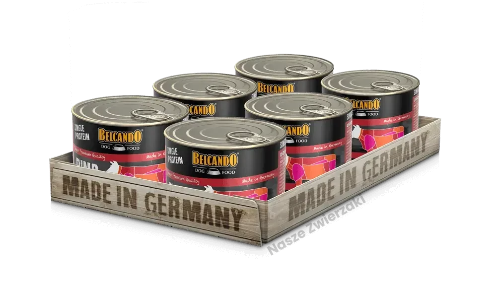 BELCANDO Single Protein Wołowina to karma mokra stworzona z myślą o psach z alergiami, nietolerancjami pokarmowymi lub wymagających prostego, klarownego składu. Zawiera wyłącznie wysokiej jakości mięso wołowe i podroby – bez zbóż, soi, warzyw, owoców czy sztucznych dodatków. Dzięki jednemu źródłu białka zwierzęcego idealnie sprawdza się w diecie eliminacyjnej oraz jako bezpieczne, codzienne źródło białka dla psów z wrażliwym układem pokarmowym.