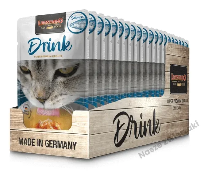 Leonardo Drink to odpowiedź na ten problem. To doskonały dodatek do karmy suchej lub mokrej dla Twojego kota. Zadaniem drinków jest zachęcenie kotów do picia i zapewnienie mu odpowiedniej ilość płynów.