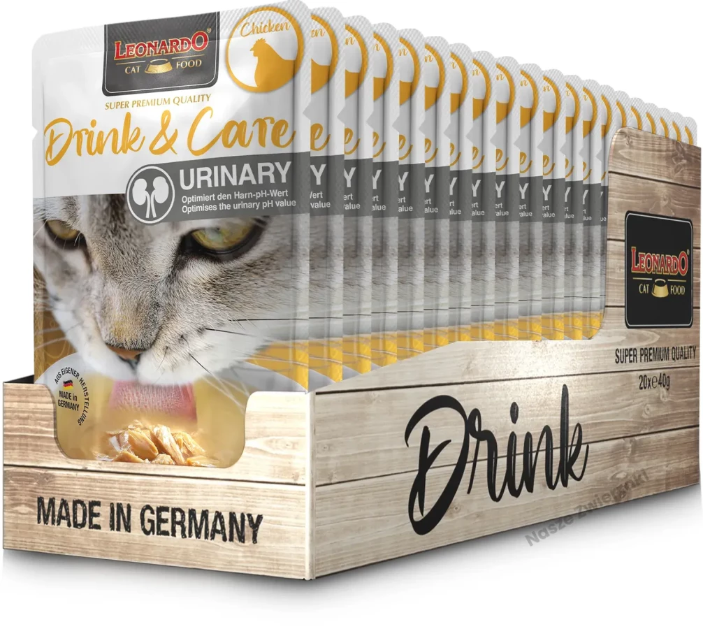 Leonardo Drink jest ważny w diecie kotów szczególnie tych mało pijących - dostarcza kotom smaczny napój, który zachęca je do picia.