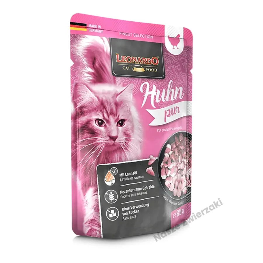 Leonardo Finest Selection Mokra karma dla kotów kurczak pure 85g to wyjątkowa karma, która zadowoli nawet najbardziej wyrafinowane podniebienie Twojego wyjątkowego kociego przyjaciela.