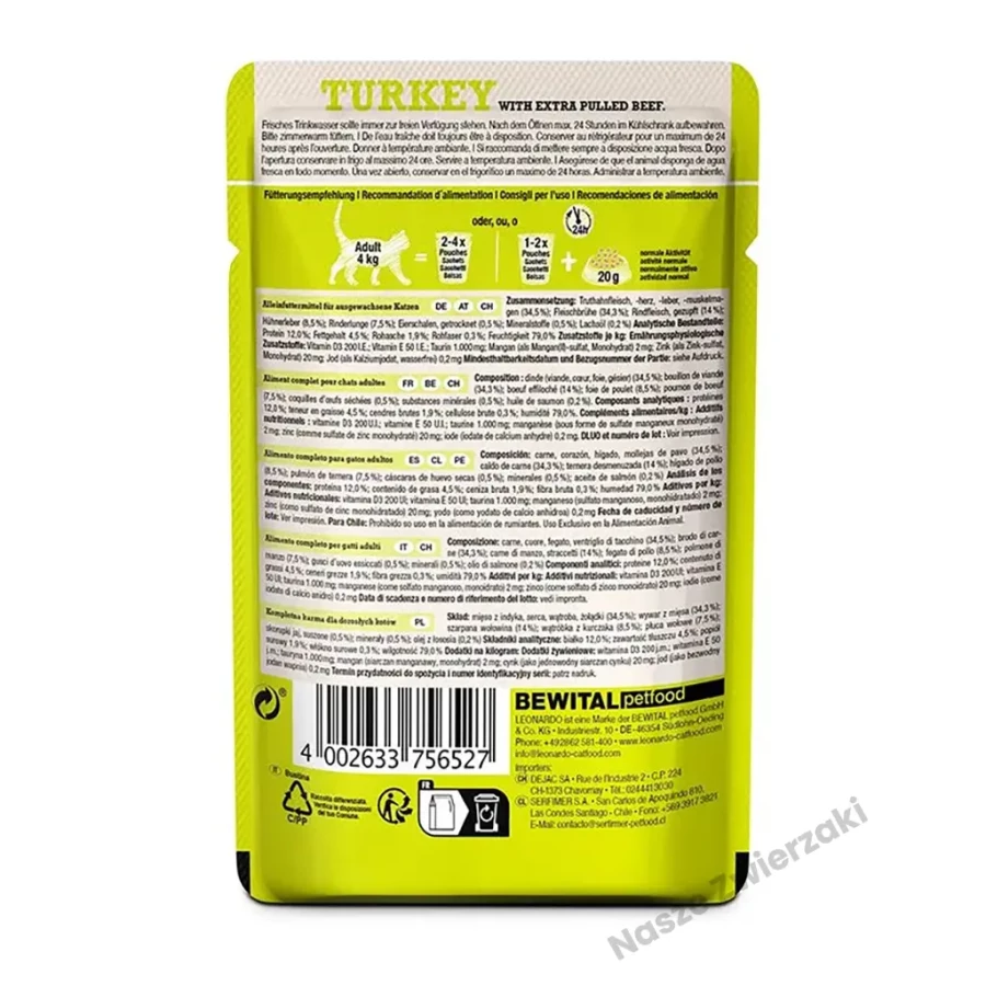 Leonardo Mokra karma dla kotów - indyk z szarpaną wołowiną 70g to wyjątkowa oferta, która dostarczy Twoim kotom zupełnie nowy smak i niezapomniane doznania podczas posiłków.