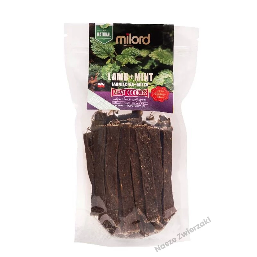 Przysmaki MILORD z jagnięciną i miętą pieprzową to doskonały wybór dla psów o wrażliwym żołądku i skłonnościach alergicznych. Jagnięcina jest mięsem lekkostrawnym i dobrze przyswajalnym, a dodatek mięty pieprzowej (1%) wspomaga procesy trawienne, działa rozkurczowo i łagodzi dolegliwości żołądkowe.