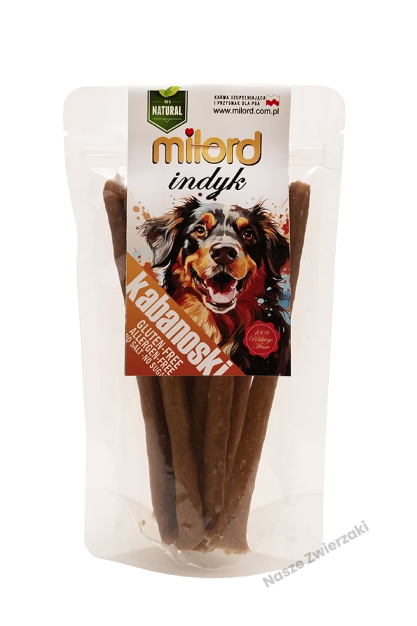 Milord - Kabanoski z indyka, suszony przysmak dla psów, 80g